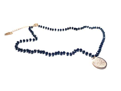 Γυναικείο κολιέ – Ροζχρυσή κοντή αλυσίδα με μαύρες χάνδρες δίσκος Φαιστού ατσάλι