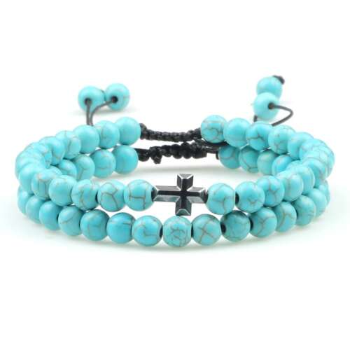 Ανδρικό βραχιόλι – Διπλό με γαλάζιες χάνδρες και σταυρό