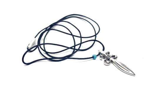 Ανδρικό κολιέ- Κρεμαστό μαύρο κορδόνι ασημί σπαθί