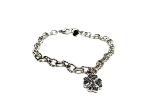 Γυναικείο βραχιόλι- Ασημί αλυσίδα χεριού κρεμαστό τετράφυλλο ατσάλι