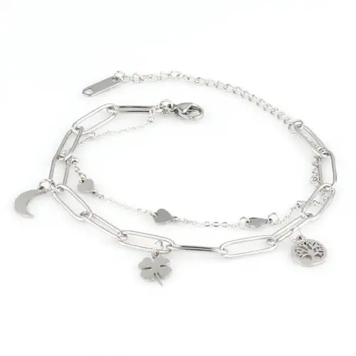 Γυναικείο βραχιόλι- Ασημί διπλό βραχιόλι κρεμαστά στοιχεία