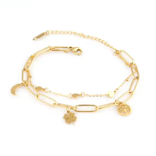 Γυναικείο βραχιόλι- Χρυσό διπλό βραχιόλι κρεμαστά στοιχεία
