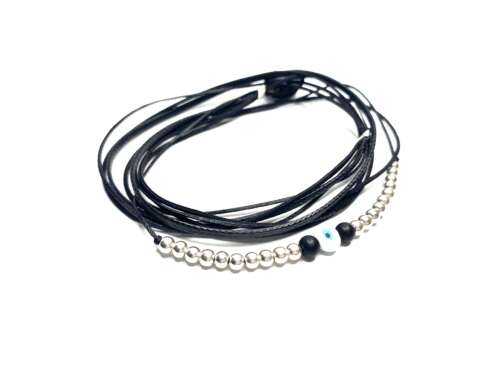 Ανδρικό βραχιόλι – Μαύρο πολλαπλό κορδόνι με χάνδρες και μάτι