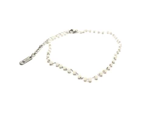 Αλυσίδα ποδιού – Ασημί βραχιόλι ποδιού με λευκές χάνδρες ατσάλι