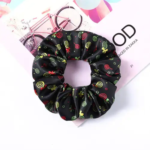 Scrunchie με σατέν υφή – Χρώμα μαύρο με γλειφιτζούρια