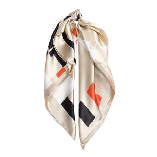Μαντήλι με σατέν υφή – Χρώμα μπεζ με λεπτομέρειες μαύρου, λευκού και πορτοκαλί