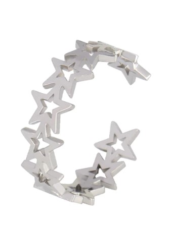 Ατσάλινο ρυθμιζόμενο ασημί δαχτυλίδι με αστέρια