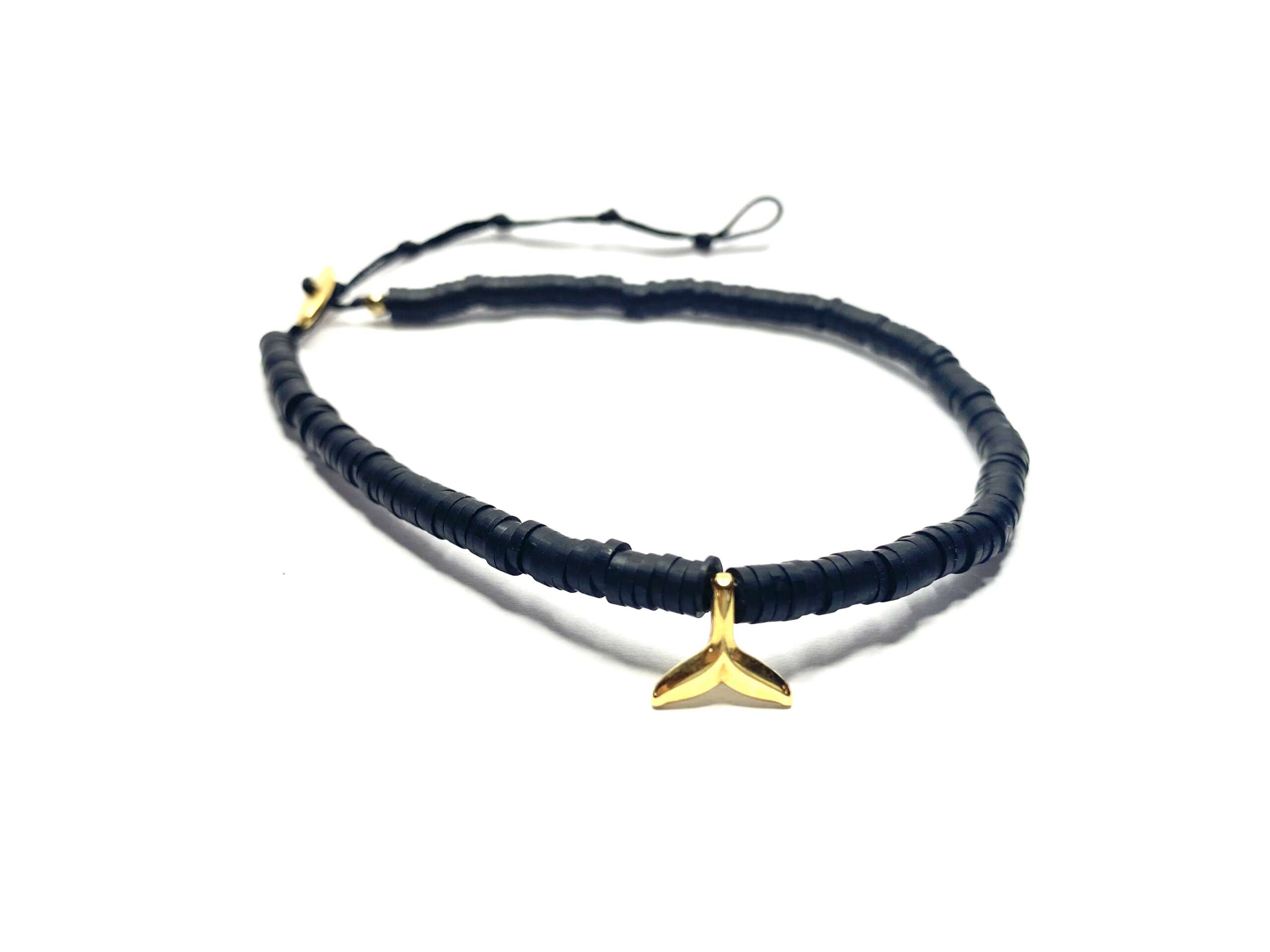 Γυναικείο Βραχιόλι Ποδιού – Μαύρο με χρυσή ουρά και χάνδρες καουτσούκ